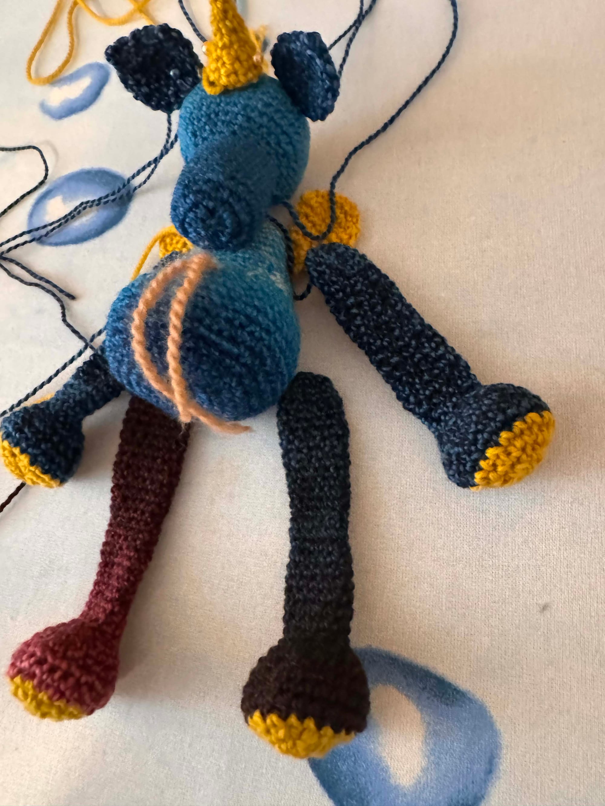 Over the New Year's holidays I worked on creating a new unicorn based on various patterns mixed and matched from Kerry Lord's excellent crochet books. I make modifications with these unicorns to add puppet rods for the body and the head so that they can be played by a puppeteer.