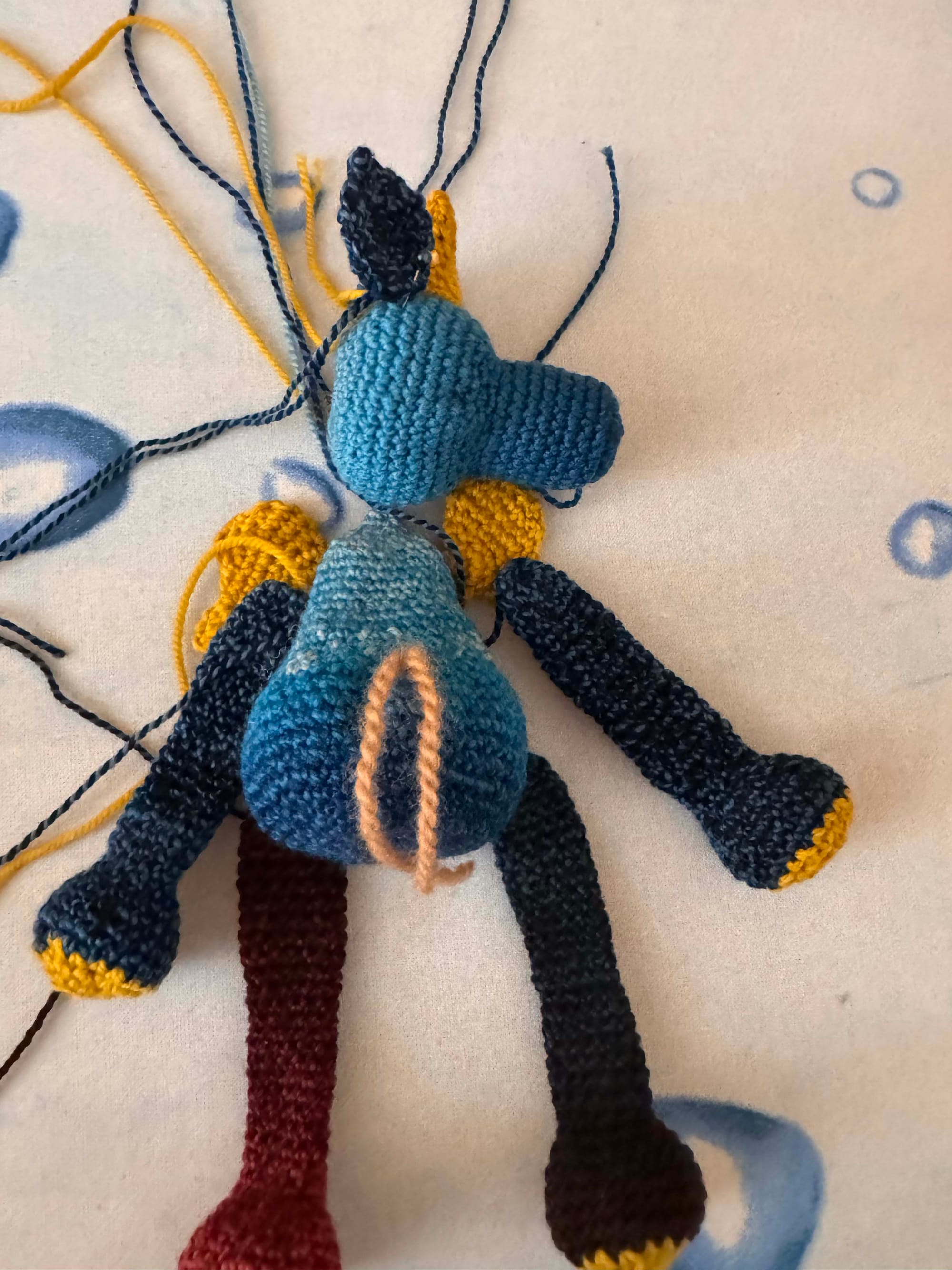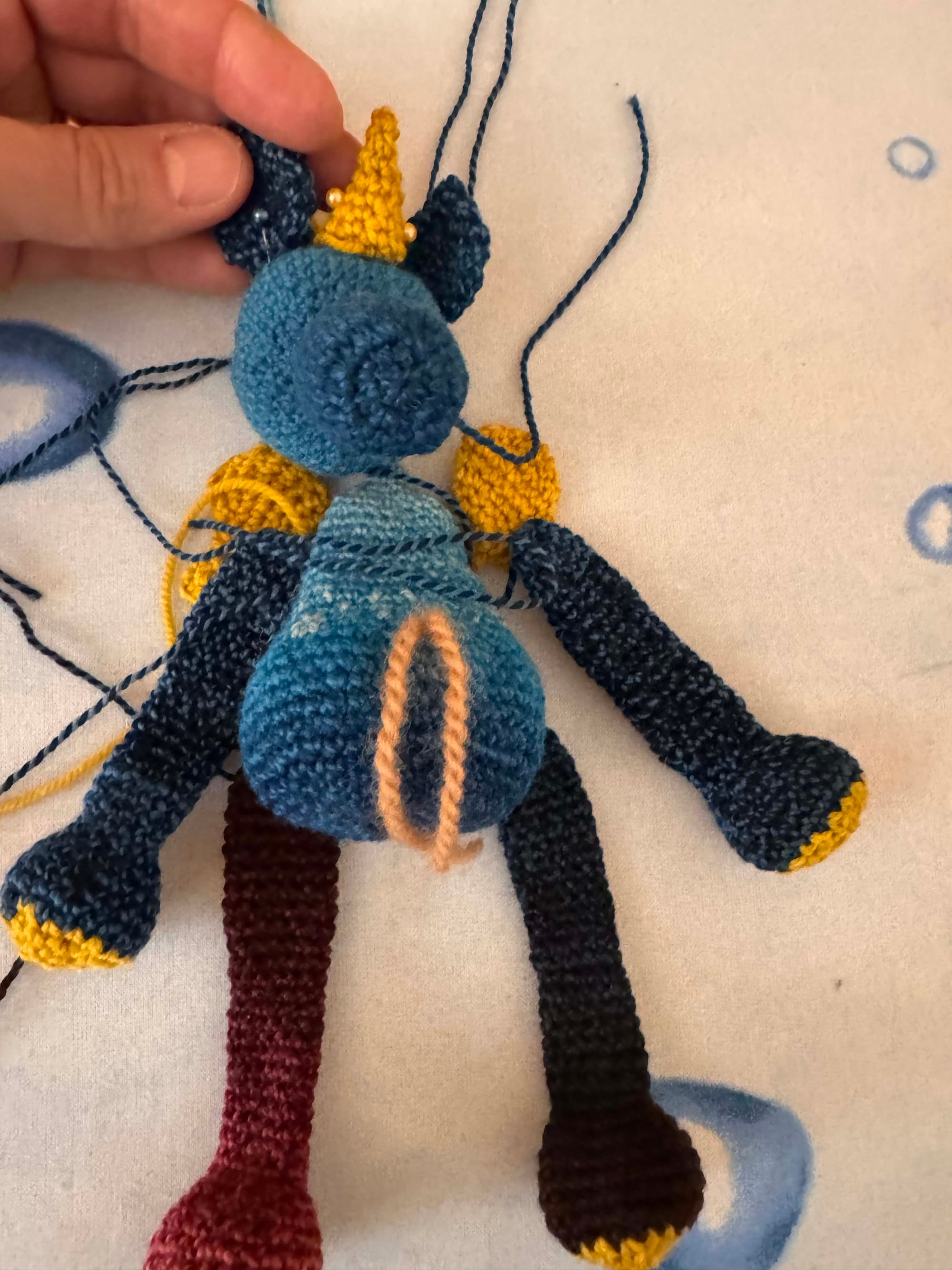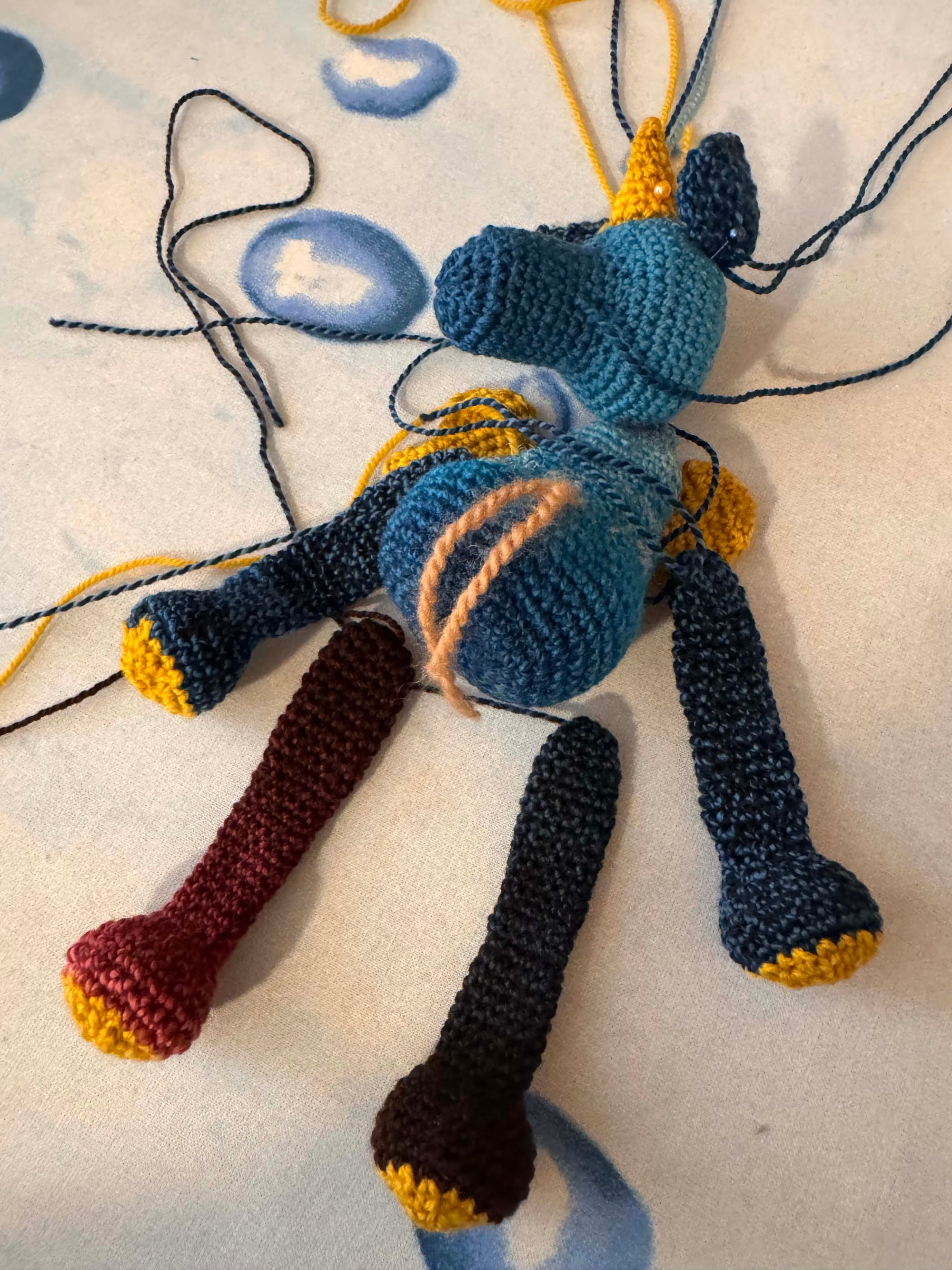 Made out of Spincycle Yarns Standard Blues and Amirisu - some mustard color I can't remember, maybe Waltz.