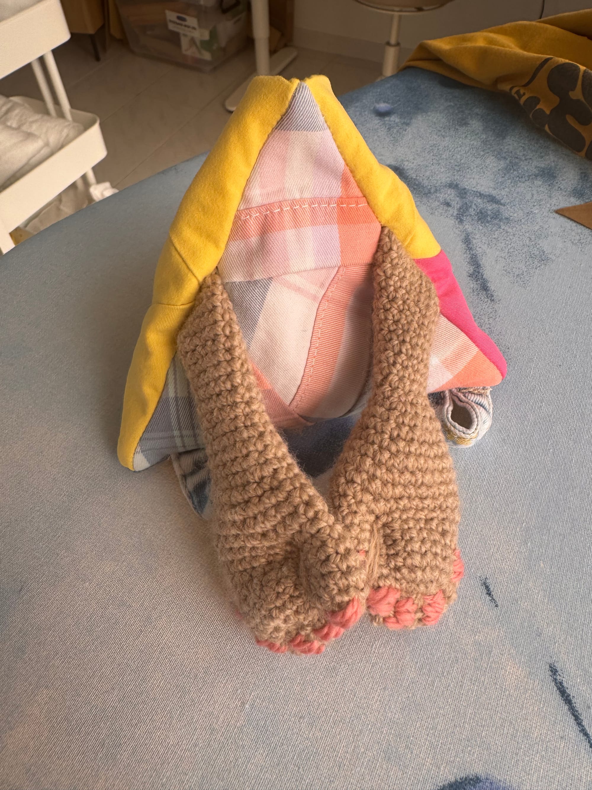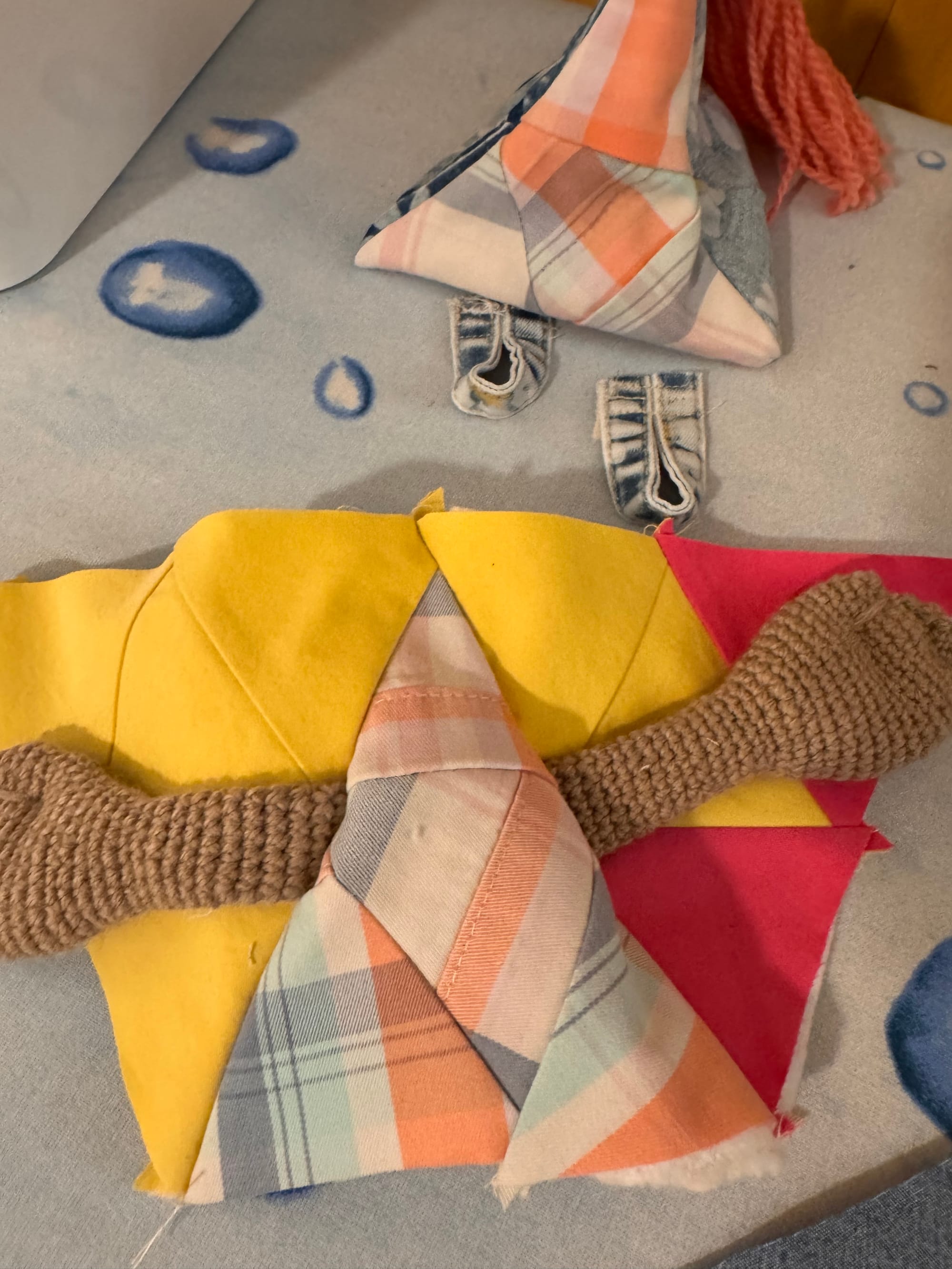 Here are some behind the scenes images of making Melly the Mully. We are still working out the geometry of Mullies. There are some refinements that will make them feel a little more complete, but at the moment we are really leaning into their awkwardness and the way the shapes fit together but only just.